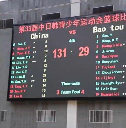 至于中国U16女篮以131-29狂胜包头U16女篮102分,中国U16女篮全队7人得分上双。